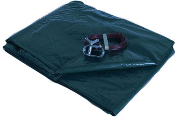 Die besonders reißfeste PEB Abdeckplane (Oberseite grün, Unterseite schwarz), mit optimiertem Flächengewicht von 160 g/m2, werden aus gewebeverstärkter Polyethylen-Folie hergestellt und veredelt. Alle PEB Planen werden mit Ösen, Spannschnur und Spannschloss ausgeliefert.