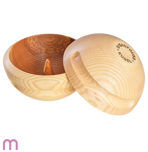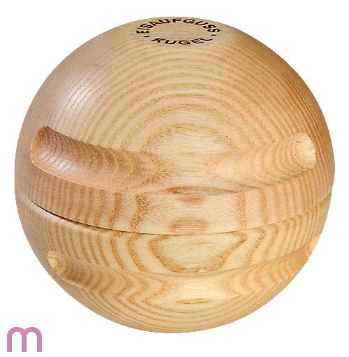 Hergestellt in Deutschland. Eisaufguss-Kugel aus Eschenholz