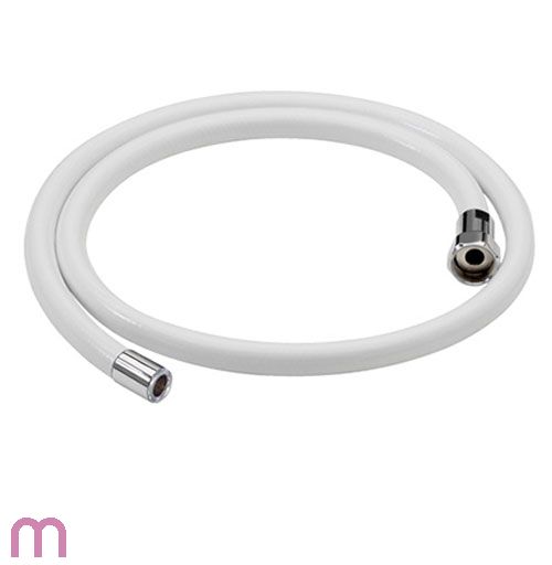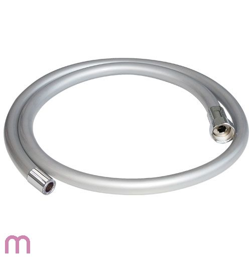 Mit Überwurfmutter in bester Profi -Qualität. 2,5 m langer Schlauch, doppelwandig, lebensmittel echt. Mit Metallauslaufhülse. Auslaufhülse passt genau in die Wandhalterung.