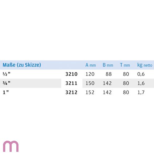 Maße zur Skizze | A mm | B mm | T mm | kg netto | Art.-Nr. |