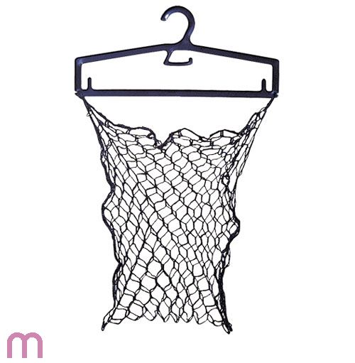 Kurzer Badkleiderbügel mit diversen Aufhängehaken und Netztasche aus starkem Nylongewebe.