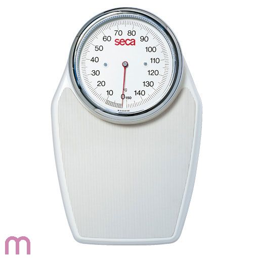 Ecrufarbenes Gehäuse, mit verchromtem Schutzring. Trittfläche aus gerilltem Naturkautschuk.Die klassische, robuste Zeigerwaage mit präziser Wiegemechanik.