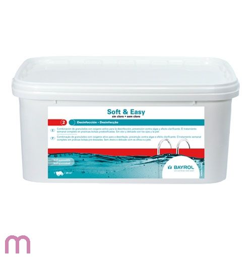 Soft & Easy ist die komplette Schwimmbadwasserpflege in Granulatform. Es enthält alle Wirkstoffe zur zuverlässigen Desinfektion, Algenverhütung und Klareffekt. Damit werden drei Pflegeschritte in einem Handgriff erledigt.